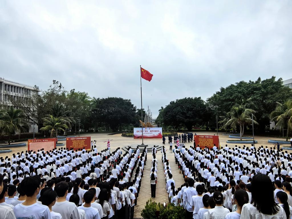 为纪念五四运动105周年,引导广大团员和青年厚植奋斗底色、唱响青春旋律,5月4日上午,校团委在湖光校区海洋广场举行主题为“赓续‘五四’薪火,践行青春担当”2024年五四青年节升旗仪式暨新团员入团仪式暨灯塔学习会之“榜样之星”校园宣传活动。校团委老师及各学院团员代表1400余人参加。