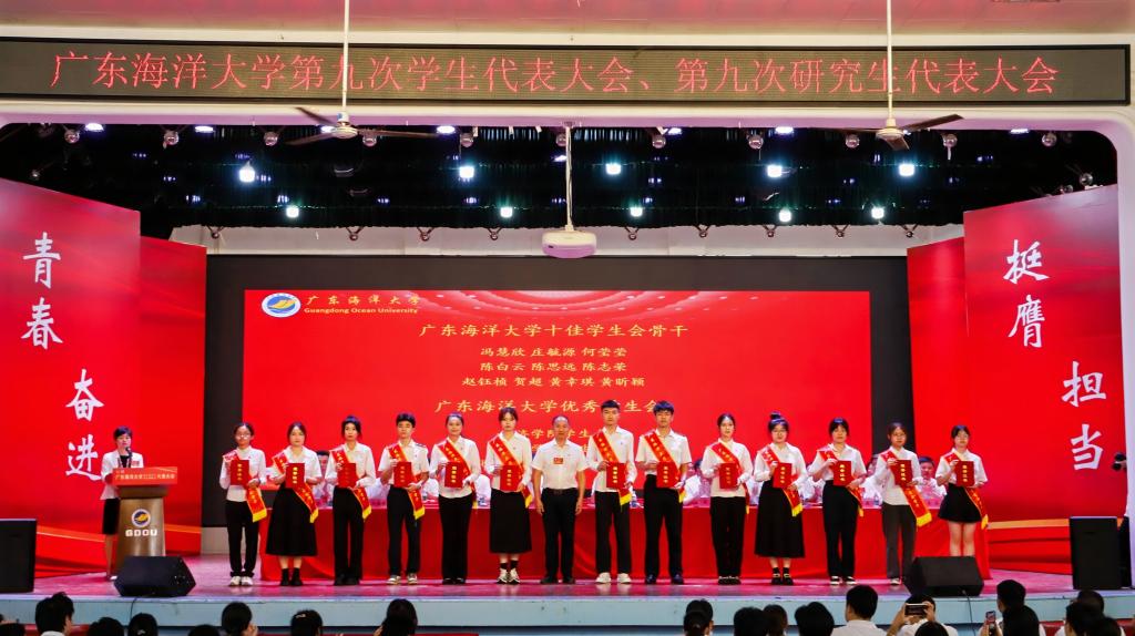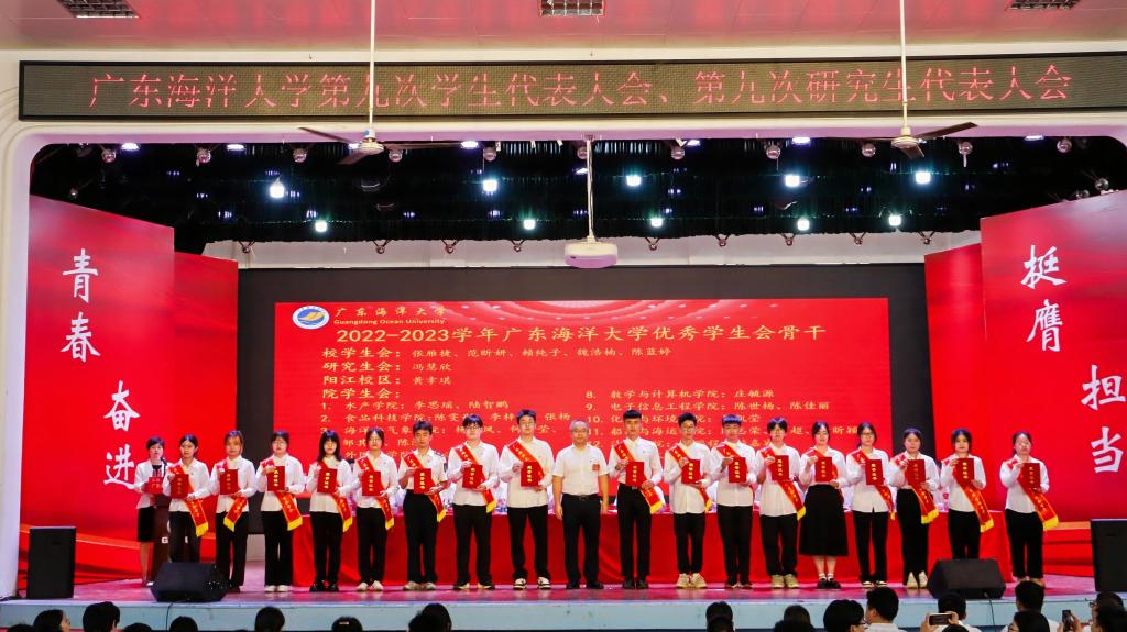 大会听取了《广东海洋大学第八届学生会工作报告》《广东海洋大学第八届研究生会工作报告》,审议通过了《广东海洋大学第九次学生代表大会选举办法》《广东海洋大学第九次研究生代表大会选举方法》,选举产生了第九届学生、研究生代表大会常任代表和学生会主席团成员。大会还对2022-2023学年获得学校优秀学生会骨干、十佳学生会骨干以及优秀学生会等先进集体和个人进行了表彰并颁发荣誉证书。
